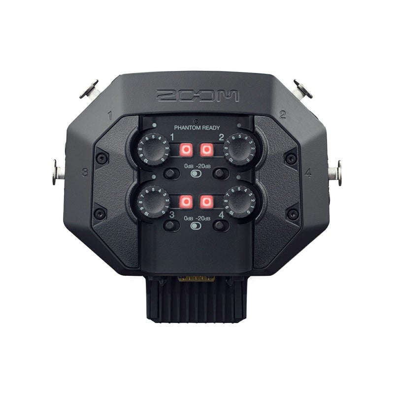 『EXH-8』は、ハンディレコーダー『H8』に、4系統のロック機構付きXLRインプットを追加する外部入力拡張カプセルです。マイクやミキサーからの信号を入力でき、H8本体に装備された6系統のインプットと合わせて、最大10チャンネル分のオーディオを入力することができます。 各インプットに専用のGAINノブと-20dBのPADスイッチを装備し、プロ機器が採用する+4dBのラインレベルも歪みなく入力可能。DC5VのUSB電源(別売ACアダプタ AD-17など)を『EXH-8』に接続すれば、コンデンサーマイクの利用に必要なファンタム電源を供給することも可能です。 H8内蔵のMUSICアプリ利用時は最大10トラックのMTRとして、PODCASTアプリでは4サウンドパッド+8マイク入力のレコーダーとして、FIELDアプリでは最大12トラック(10トラック+L/Rミックス)録音のフィールドレコーダーとして、最大10チャンネルの入力を必要とするプロジェクトに対応します。 ※マイクカプセル延長ケーブル(ECM-3 / ECM-6)は使用できません。 ※H8で使用するには、ファームウェアV2.0以降へのアップデートが必要です。